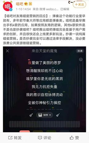 唱吧方面认为功能相似很正常,